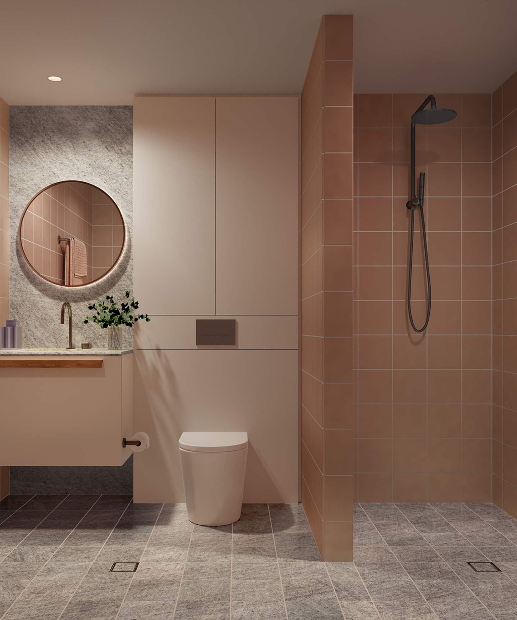 Your 2 bedroom apartment in Sydney’s Inner West includes bathrooms that take luxury living to another level with designer finishes and clever touches for enjoyable everyday living. Exquisite design meets practicality in your master ensuite and second bathroom, both featuring natural granite tiled floors, ceramic tiled walls, a wall-hung vanity and wall-mounted mirror with LED strip lighting.