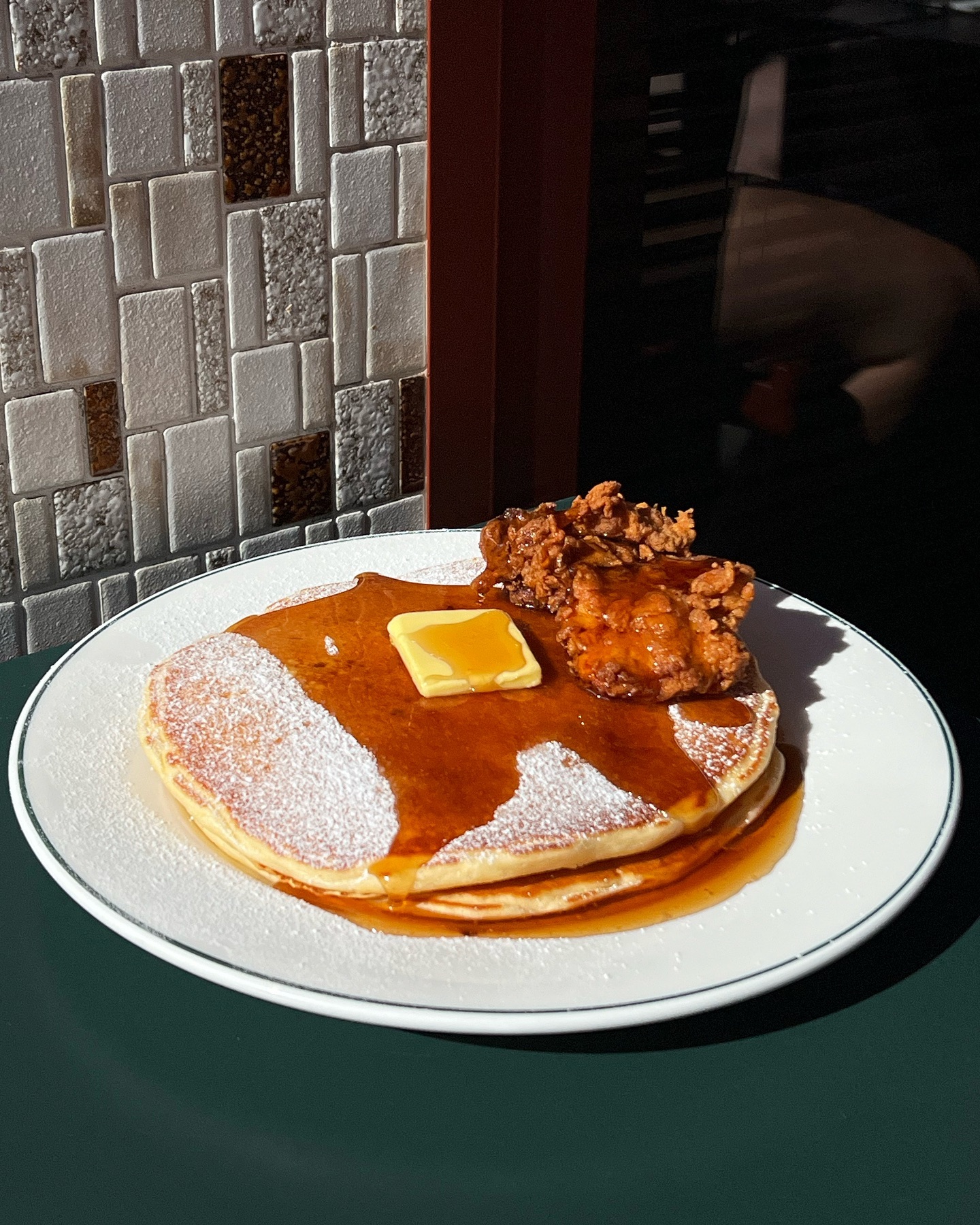 On the other end of the wholesome-to-indulgence spectrum, you’ll find Valentinas from the Grumpy Donuts team. Inspired by the all-day breakfast tradition of American diners, expect a menu of comfort classics: fluffy stacks of pancakes with blueberry sauce; sausage, egg and cheese muffins; and a mean hot honey chicken sandwich.